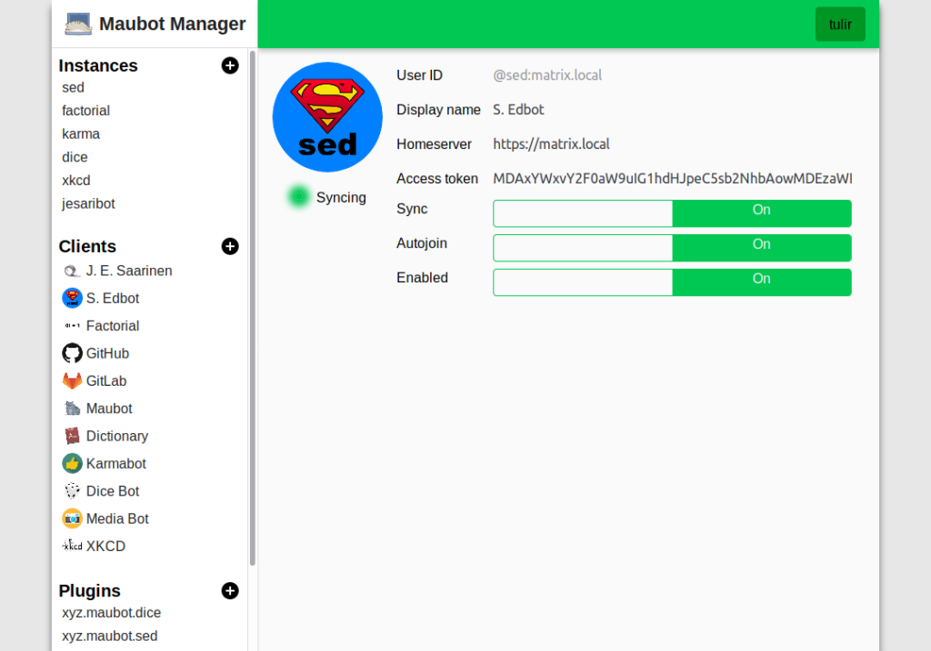 tulir has been making big progress on his maubot management UI: